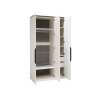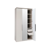 Внутри модель поделена на удобные секции со штангой, полками и ящиками, что позволяет распределить одежду по разным категориям. Стильная фрезеровка и узкие ручки придают мебели особый шарм, а зеркальное полотно визуально увеличивает пространство.