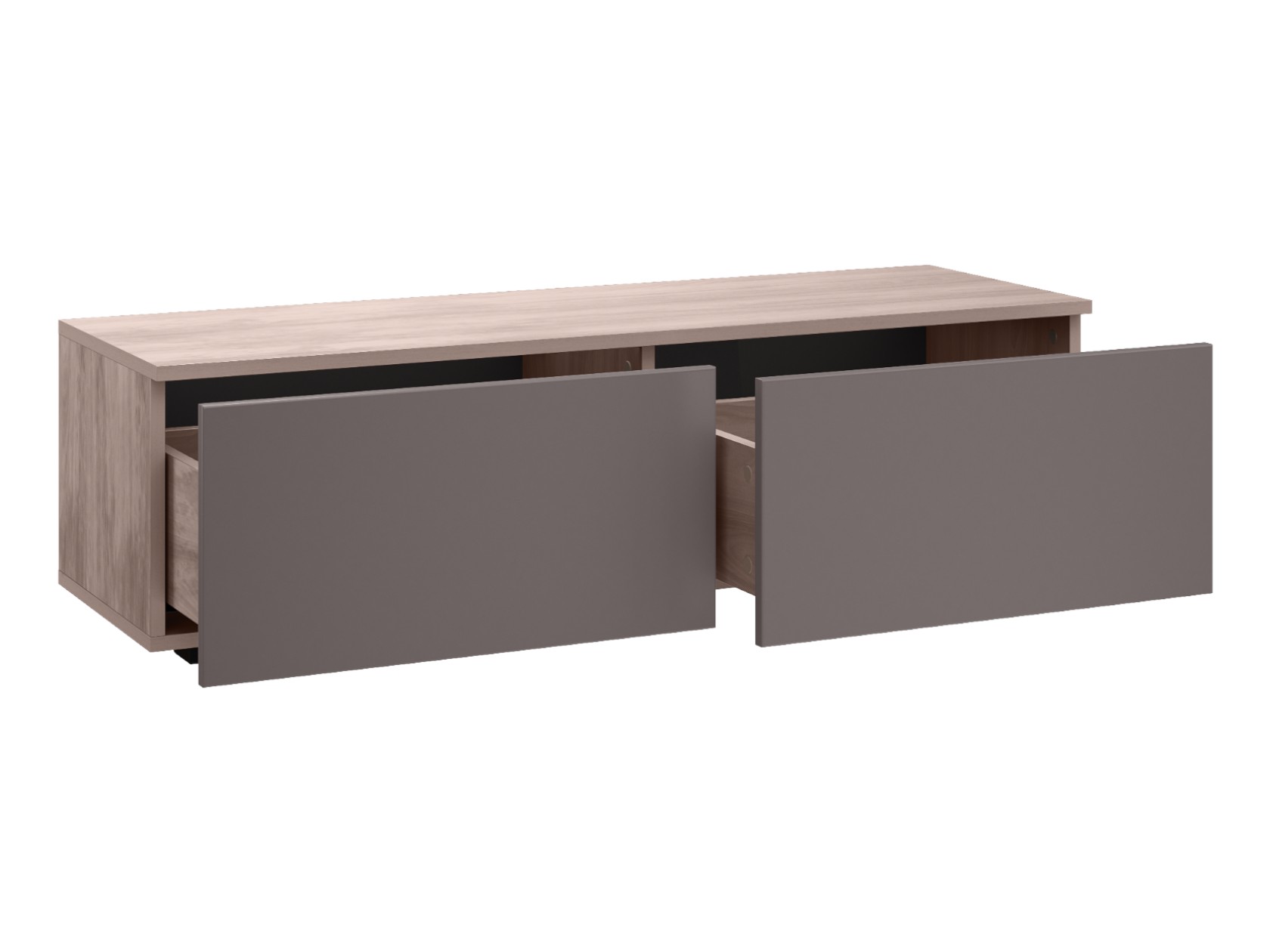 В наборе есть всё, чтобы организовать хранение вещей и обеспечить место для широкоформатного телевизора. Стеклянный фасад со стильной черной рамкой защитит содержимое от пыли и солнечного света. ТВ-тумбы и распашные шкафы помогут расположить текстиль и другие предметы обихода.
