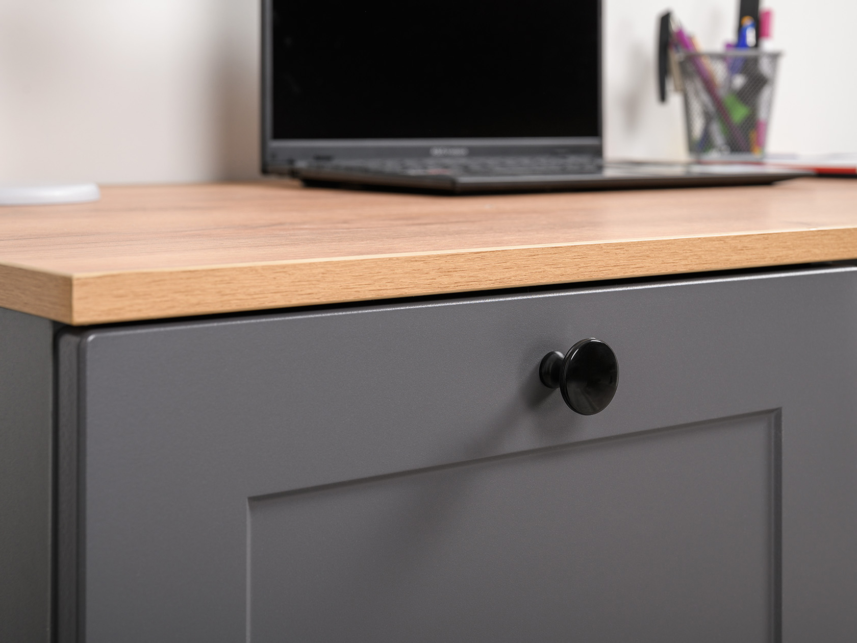 Просторная поверхность обеспечивает достаточно места для ноутбука или стационарного компьютера. Тумба с ящиками поможет поддерживать порядок в документах, канцелярии и различных мелочах. Выдвижные ящики открывают полный обзор содержимого. Стильный дизайн легко интегрируется в любой интерьер.